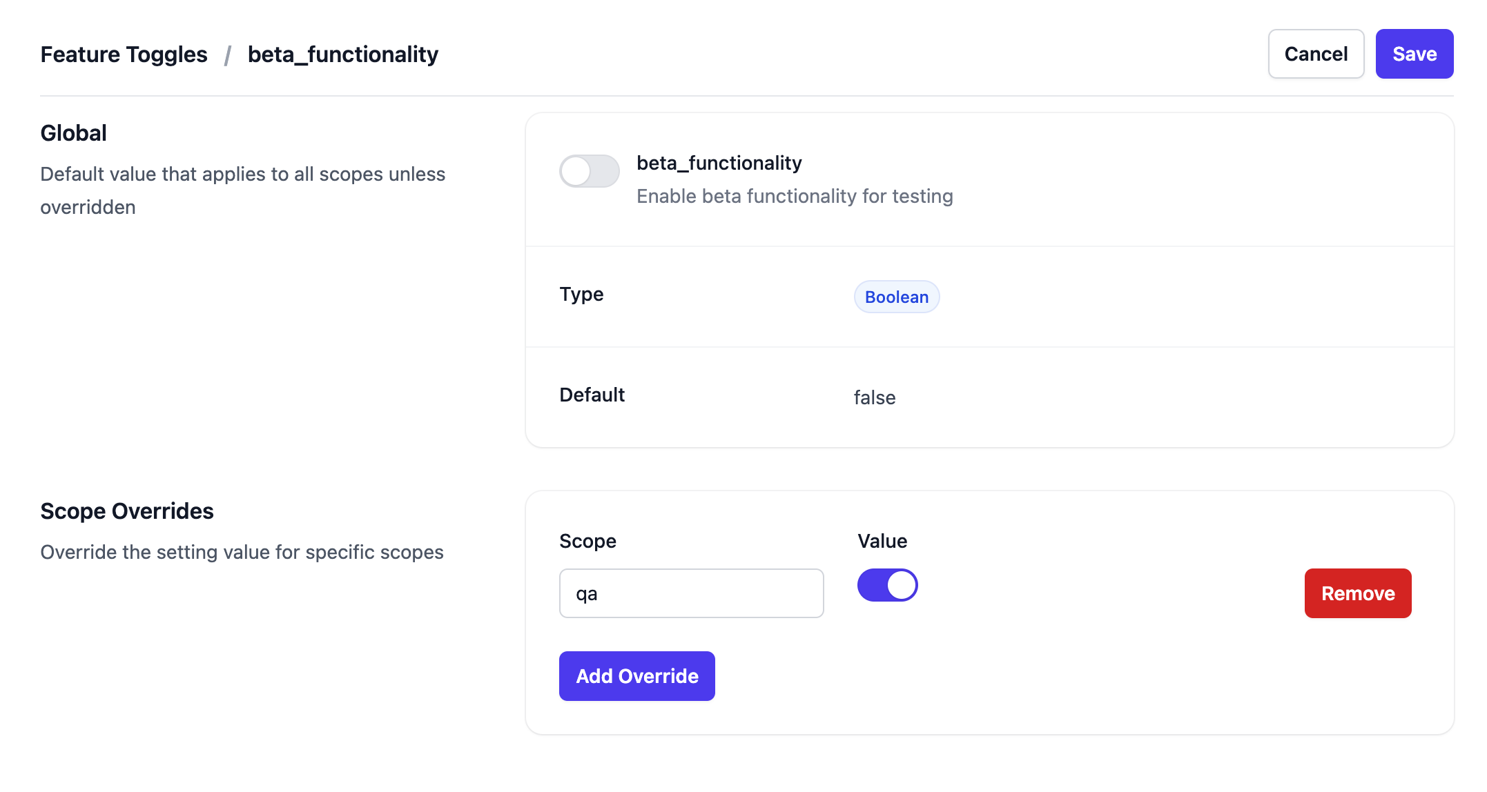 Set per-scope values for settings — QA, UnityID, or any custom context.